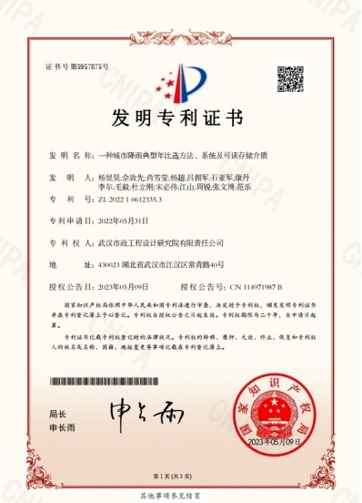 最終,項目組梳理了降雨典型年比選的方法,并申報獲批了國家發(fā)明專利。