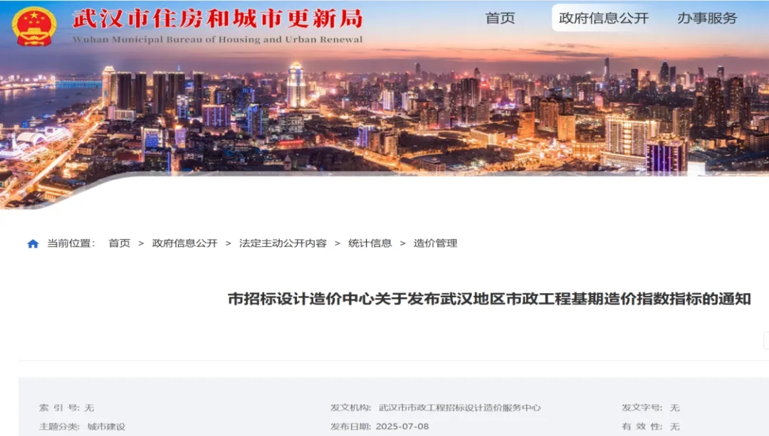 全省首發(fā) | 武漢市政院助力市招標(biāo)中心發(fā)布市政工程造價(jià)指數(shù)指標(biāo)