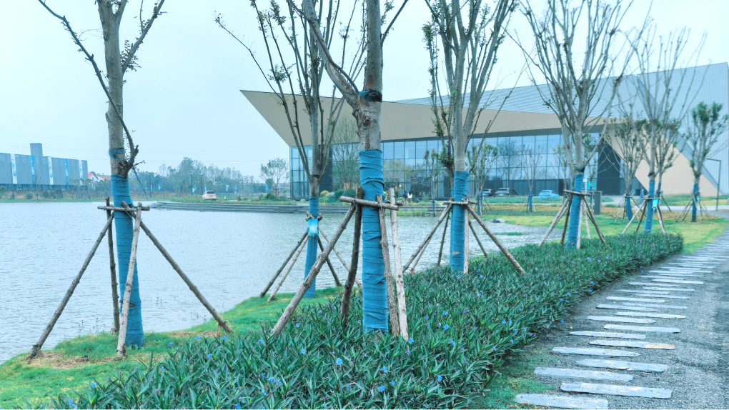 ? ? 水域通過破塘還湖營造大水面,南側(cè)岸線結(jié)合永久會址、濕地展創(chuàng)中心、如意巷進行濱水景觀岸線營造活力水岸,銜接三大建筑群,串聯(lián)活動及展示功能;西岸結(jié)合現(xiàn)狀吸引鳥類湖塘營造鳥語水岸,構(gòu)建濕地棲鳥觀鳥空間;北岸以最小干預原則,以生態(tài)岸線營造為主構(gòu)建生境水岸;東岸延續(xù)現(xiàn)狀荷塘風貌構(gòu)建花塘水岸,同時結(jié)合城鎮(zhèn)開發(fā)邊界為遠期策劃預留彈性空間。