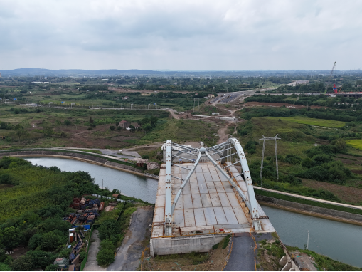 ? ? 生態(tài)優(yōu)先,構(gòu)筑和諧跨越景觀。道路跨越重要的漳河水庫(kù)總干渠,設(shè)計(jì)創(chuàng)新采用90米下承式簡(jiǎn)支鋼箱拱橋,造型寓意“雙龍戲珠”,在確保水源安全與灌溉功能不受影響的前提下,打造出震撼的視覺(jué)地標(biāo),實(shí)現(xiàn)了功能、生態(tài)與景觀的有機(jī)融合。