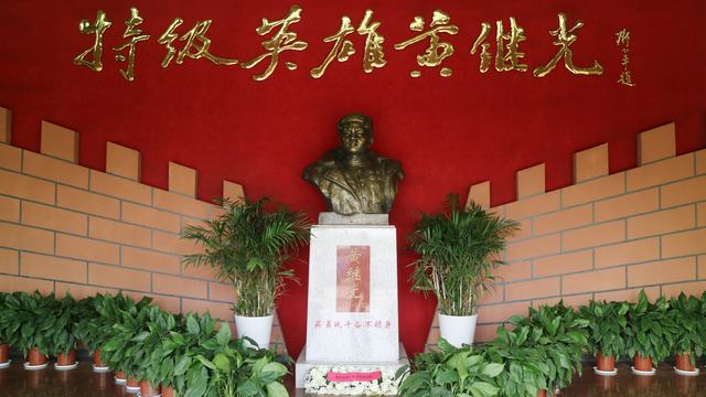 ??? 下午15時許,全體黨員在工作人員的指引下,參觀了黃繼光英雄連營地及黃繼光班宿舍。黃繼光英雄連榮譽室莊嚴肅穆,“特級英雄黃繼光”的金色大字熠熠生輝,訴說著英雄的無上榮光。全體黨員在黃繼光雕塑前駐足凝視,向英雄敬獻花籃,并集體鞠躬致哀。圣潔芬芳的白玫瑰、輕盈綻放的滿天星,寄托著對英雄的深切緬懷和崇高敬意。隨后,全體黨員在工作人員的解說指引下,緩步繞行,默默地瞻仰著黃繼光的生平事跡及黃繼光英雄連的榮譽展覽,心靈、思想受到極大觸動和震撼。