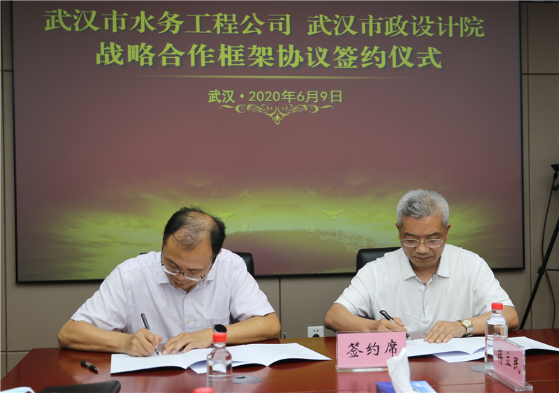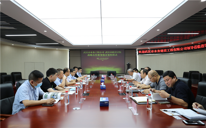 2020年6月9日下午,公司與武漢市水務建設工程有限公司簽訂戰(zhàn)略合作框架協(xié)議,雙方將依托各自優(yōu)勢資源,在城市水務建設、市政基礎設施建設等多領域展開深度合作。武漢市水務建設工程有限公司經(jīng)理程飛、黨委書記陳軍、副經(jīng)理宋萍森,公司董事長武興治、總經(jīng)理姚華、副總經(jīng)理周俊等出席了簽約儀式。