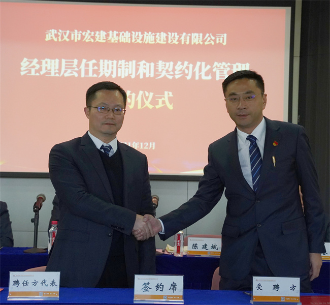 隨后,公司黨委書記、董事長武興治與黨委副書記、總經(jīng)理陳建斌簽署崗位聘任協(xié)議書,陳建斌分別與公司經(jīng)理層成員和所屬武漢路源工程質(zhì)量檢測有限公司、武漢市宏建基礎(chǔ)設(shè)施建設(shè)有限公司經(jīng)理層成員簽署崗位聘任協(xié)議書。