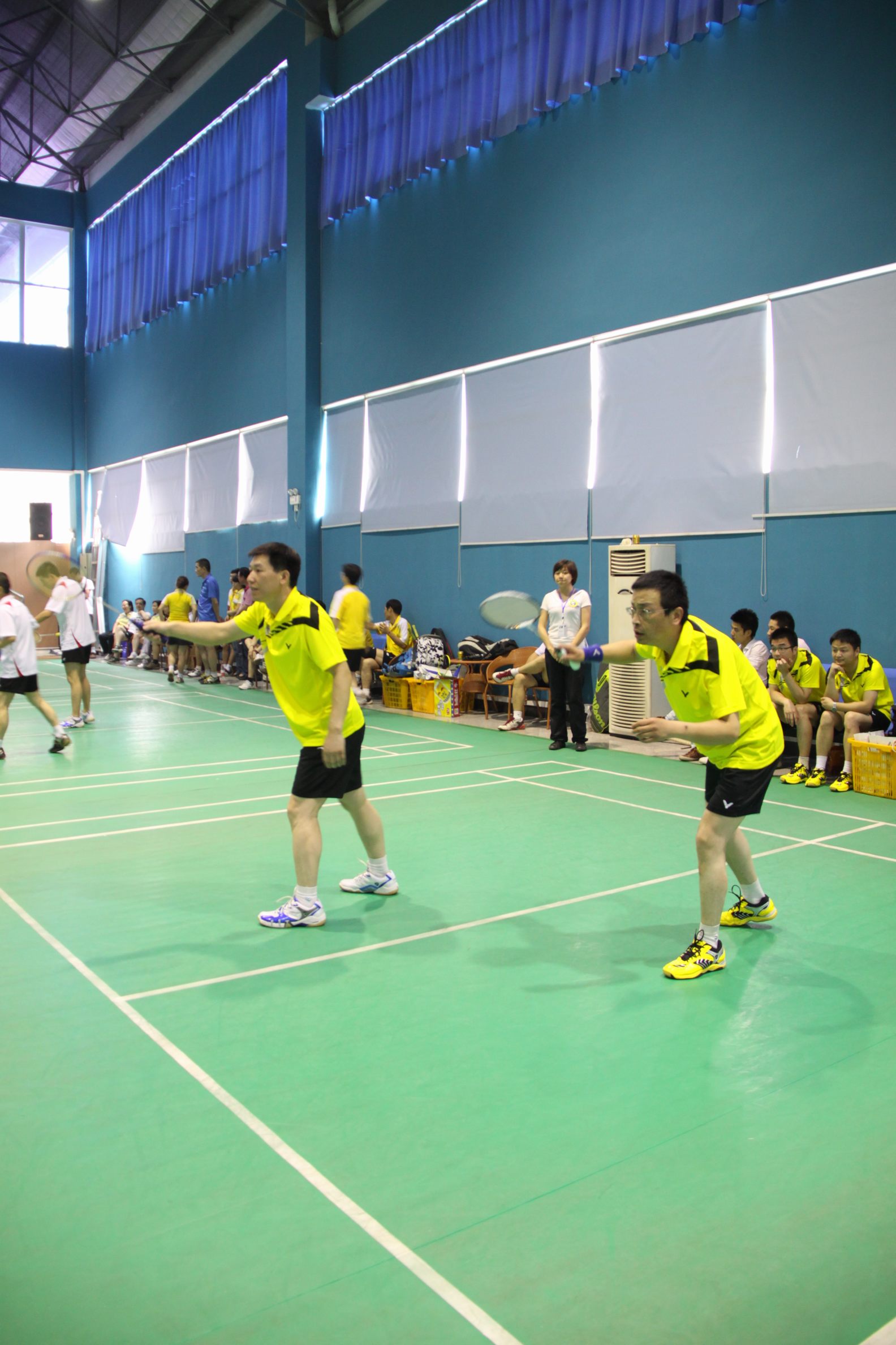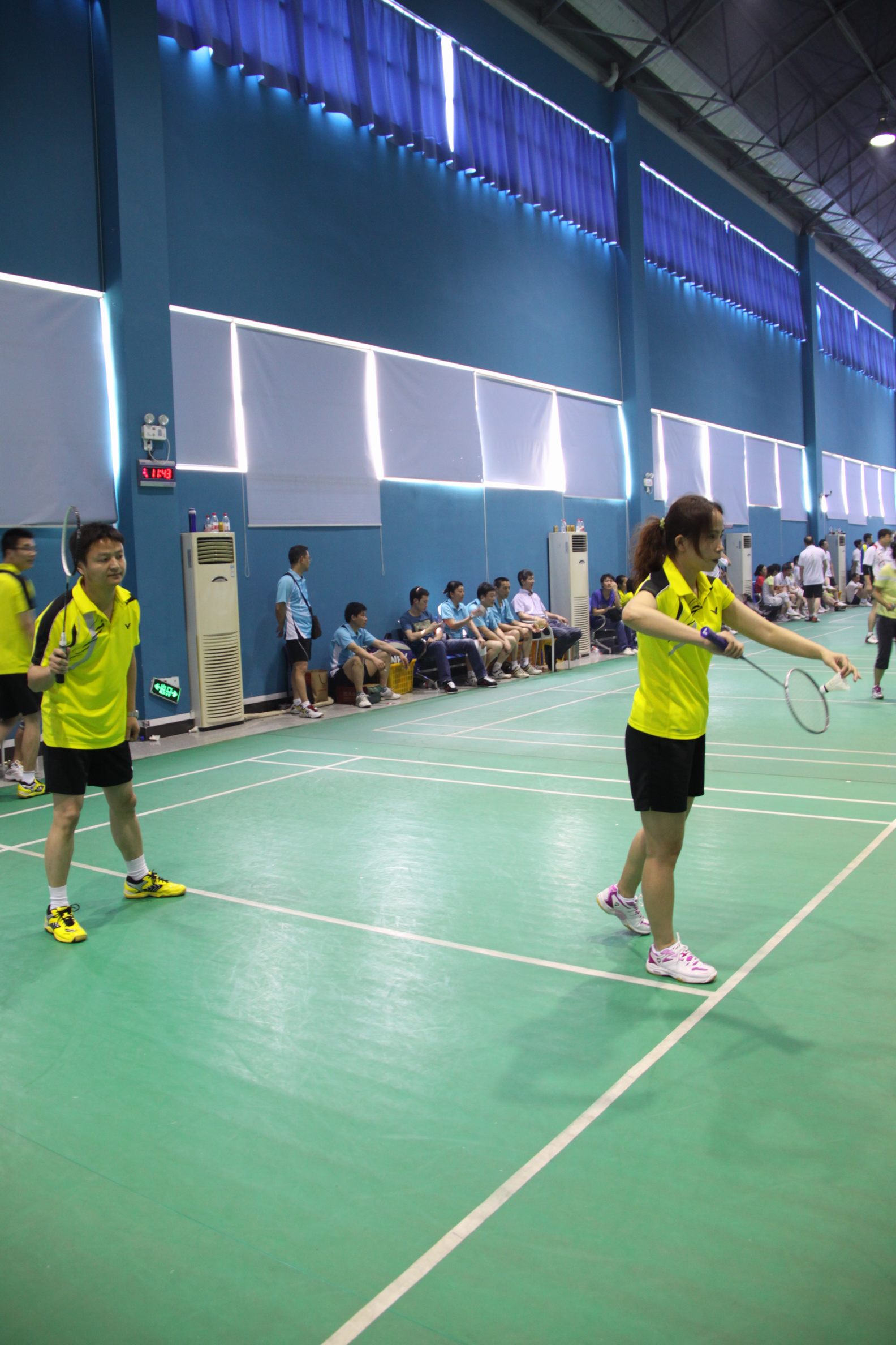 ??? 在上午小組出線賽中,公司擊敗散裝辦、墻改辦、造價(jià)站,以小組第一的成績出線,進(jìn)入八強(qiáng)。下午,在八強(qiáng)淘汰賽中,公司遭遇到了曾經(jīng)的建委系統(tǒng)羽毛球團(tuán)體比賽冠軍隊(duì)——建筑質(zhì)監(jiān)站。面對(duì)強(qiáng)隊(duì),隊(duì)員們沉著應(yīng)戰(zhàn),在女雙、男雙比賽中連失兩分的情況下,頂住壓力,穩(wěn)扎穩(wěn)打,在第三項(xiàng)領(lǐng)導(dǎo)干部雙打、第四項(xiàng)混雙比賽中連得兩分,將比分拉平。在進(jìn)入了第五項(xiàng)男雙的決勝賽后,賽場(chǎng)上氣氛異常緊張,雙方隊(duì)員把比分咬得比較緊。最終,因隊(duì)員比賽經(jīng)驗(yàn)稍遜一籌,建筑質(zhì)監(jiān)站以微弱優(yōu)勢(shì)贏得比賽,公司代表隊(duì)止步八強(qiáng)。