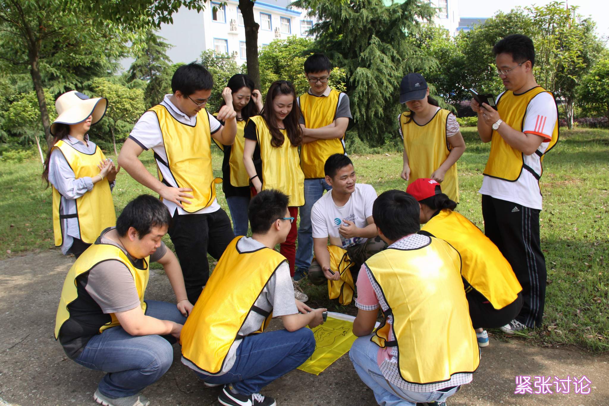 ??? 在下午的拓展訓(xùn)練中,每支隊伍要根據(jù)線索提示分別前往五個不同的地方完成任務(wù),而只有完成一個任務(wù)后,才能獲得下一個任務(wù)的線索。由于每個任務(wù)的地點相距較遠,因此這是對體力和腦力的雙重考驗。隊員們充分發(fā)揚團隊精神,他們向周邊的游人說出接頭暗號,從幾十名游客中將接頭人尋找出來;他們互幫互助,保證了每名隊員都能參與并完成踢毽子游戲;他們集思廣益,用一張小小的A4紙張和一把剪刀,便能在不需要任何粘合工具的情況下制作出能夠容納所有隊員的圓環(huán);他們齊心協(xié)力,帶領(lǐng)體力不好的隊員堅持完成了爬山越野。