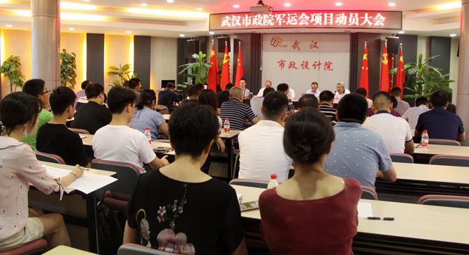 ??? 8月11日上午,武漢市政院在西二樓會議室召開軍運會項目動員推進大會,會議由副總經(jīng)理周俊主持,公司主要領(lǐng)導(dǎo)、總經(jīng)理助理、相關(guān)部門負責人、技術(shù)管理人員和軍運會項目負責人、專業(yè)負責人共60余人參加了會議。
