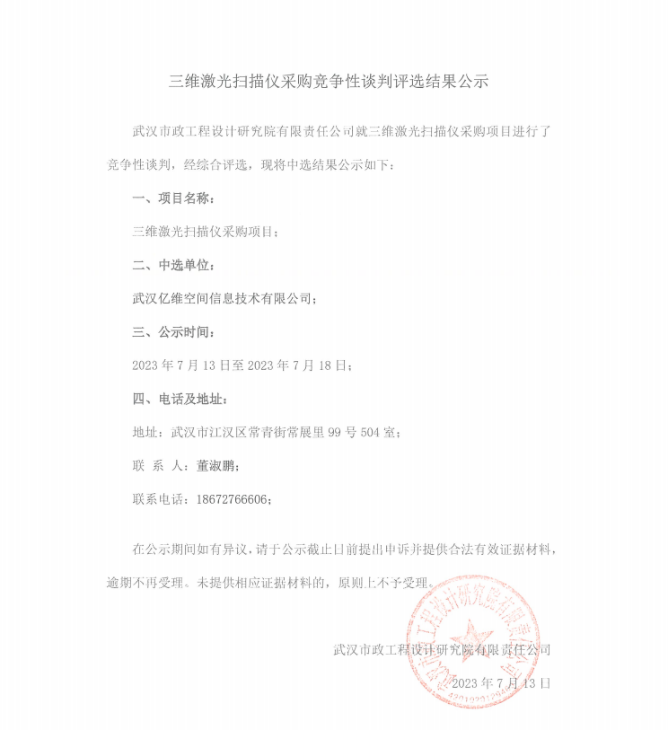 三維激光掃描儀采購(gòu)競(jìng)爭(zhēng)性談判評(píng)選結(jié)果公示